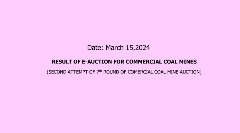 Auction of Commercial Coal Mines Result of E-Auction For Commercial Coal Mines 2 years ago For more information click here to view complete report. Continue Reading Previous 14216 Notice regarding revision in timelines of e-auction 9th roundNext Achievements of Ministry of Coal – February 2024